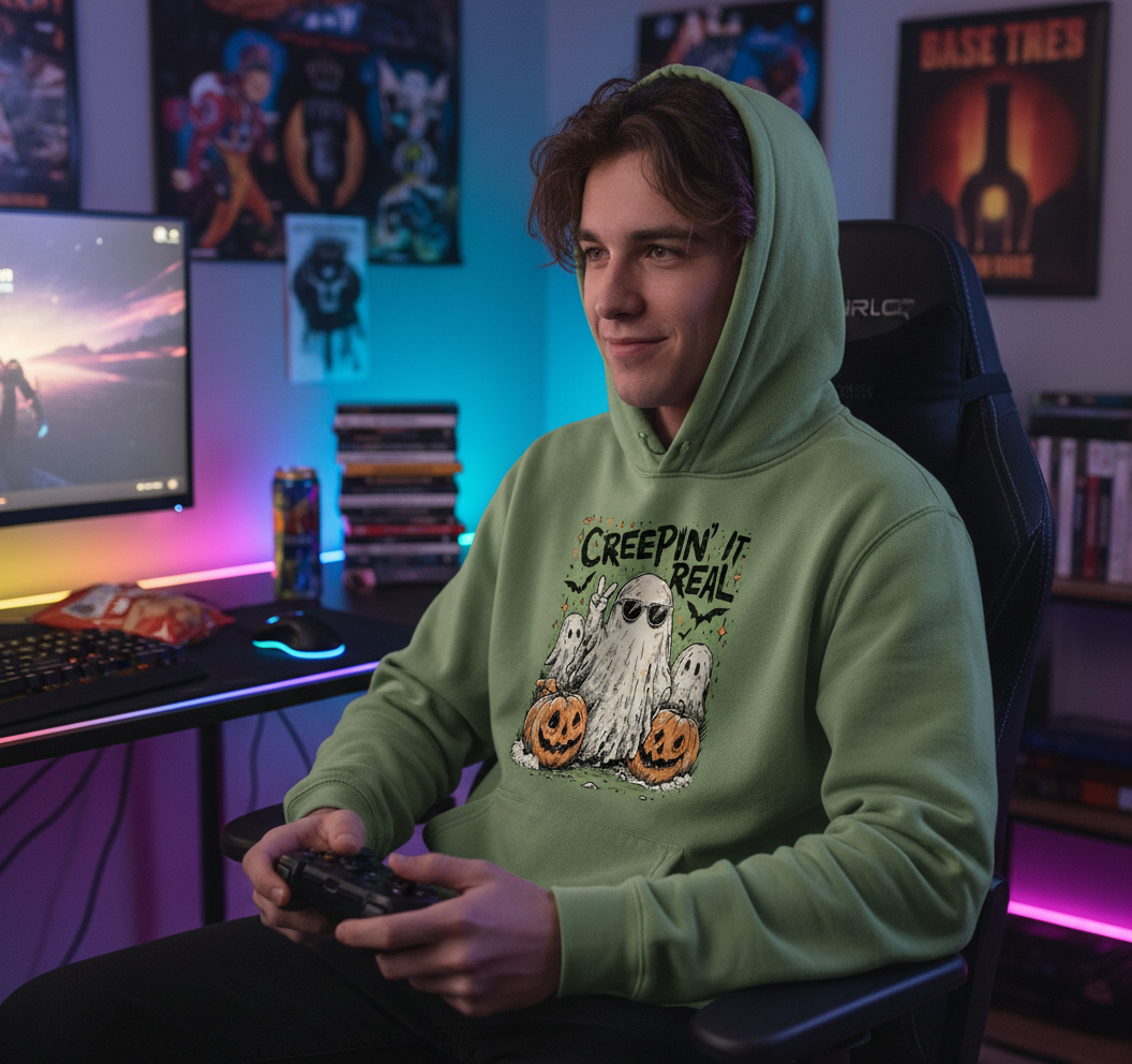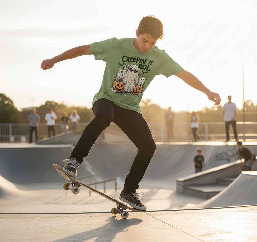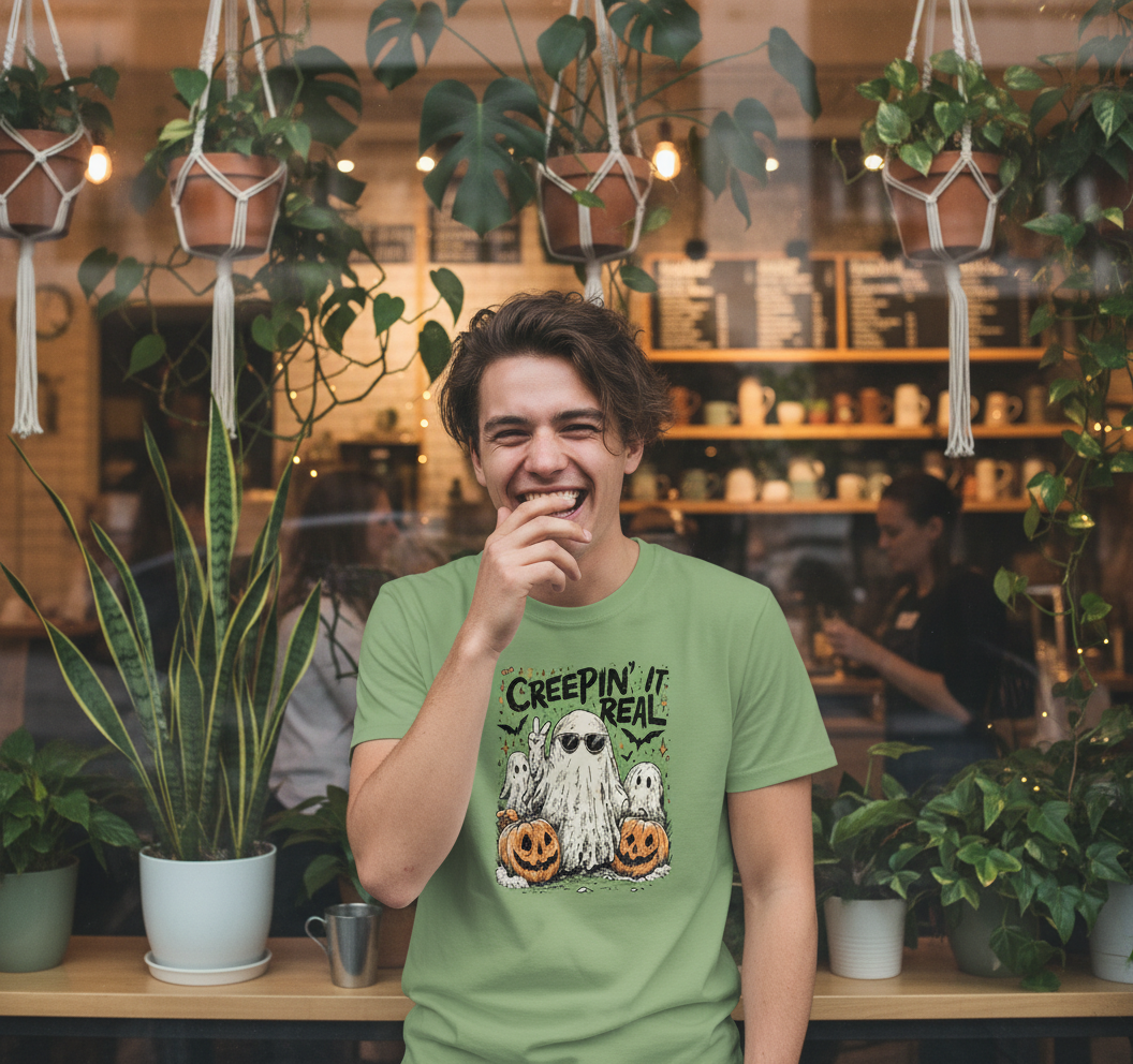 Keep it spooky and fun this Halloween with the “Creepin’ It Real” T-Shirt! 👻