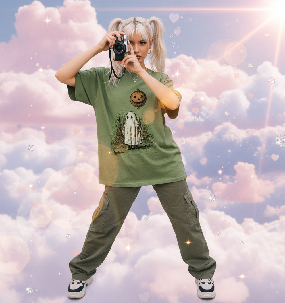 Keywords: halloween shirt, ghost pumpkin tee, cute fall outfit, vintage spooky top, aesthetic halloween t-shirt
